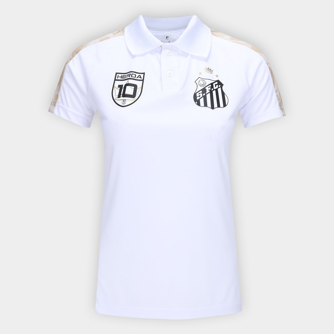 Camisa Polo Santos Feminina - Branco+dourado