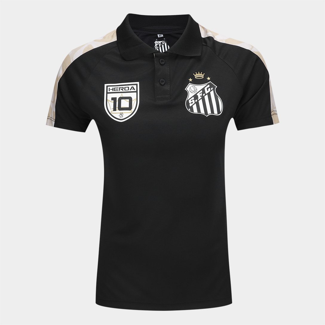 Camisa Polo Santos Feminina - Preto+Dourado