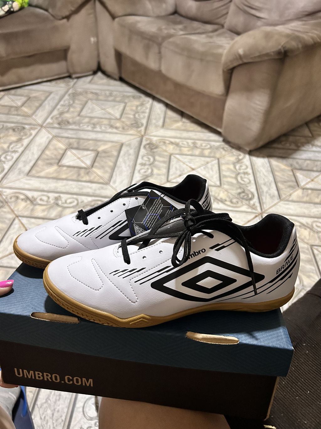Chuteira Futsal Umbro Brave: Desempenho e Conforto em Cada Jogo Se você é um jogador de futsal que valoriza resistência e conforto, a Chuteira Futsal Umbro Brave é a escolha perfeita para elevar seu desempenho em quadra. Com um design inovador e tecnologia de ponta, este modelo foi desenvolvido especialmente para atender às necessidades dos atletas mais exigentes. Por Que Escolher a Chuteira Futsal Umbro Brave? A Chuteira Futsal Umbro Brave combina qualidade e estilo, oferecendo tudo que você precisa para se destacar durante as partidas. Seu cabedal sintético é projetado para garantir durabilidade, enquanto o forro em poliéster proporciona um ajuste confortável, permitindo que você se concentre no jogo sem distrações. Além disso, a palmilha em EVA proporciona um excelente amortecimento, ideal para longas jogadas e treinos intensos. Desempenho Superior em Quadra O solado da Chuteira Futsal Umbro Brave é composto por PVC e TPU, materiais que oferecem tração eficaz e aderência superior. Isso assegura controle e estabilidade, permitindo que você faça movimentos ágeis e precisos em quadras sintéticas ou de cimento. Com essa chuteira, você poderá executar dribles e passes com confiança, maximizando seu desempenho em cada partida. Conforto que Dura Um dos grandes diferenciais da Chuteira Futsal Umbro Brave é o conforto que ela proporciona. O forro em poliéster e a palmilha em EVA trabalham juntos para criar uma experiência de uso que permite que você jogue por mais tempo sem desconforto. Essa combinação é perfeita para quem treina frequentemente ou participa de competições. Estilo e Versatilidade Disponível nas cores branco e preto, a Chuteira Futsal Umbro Brave não só é funcional, mas também estilosa. Seu design moderno combina com diferentes uniformes, permitindo que você jogue com elegância e atitude. Não perca a oportunidade de melhorar seu desempenho com a Chuteira Futsal Umbro Brave. Adquira a sua agora e sinta a diferença em cada jogada!.